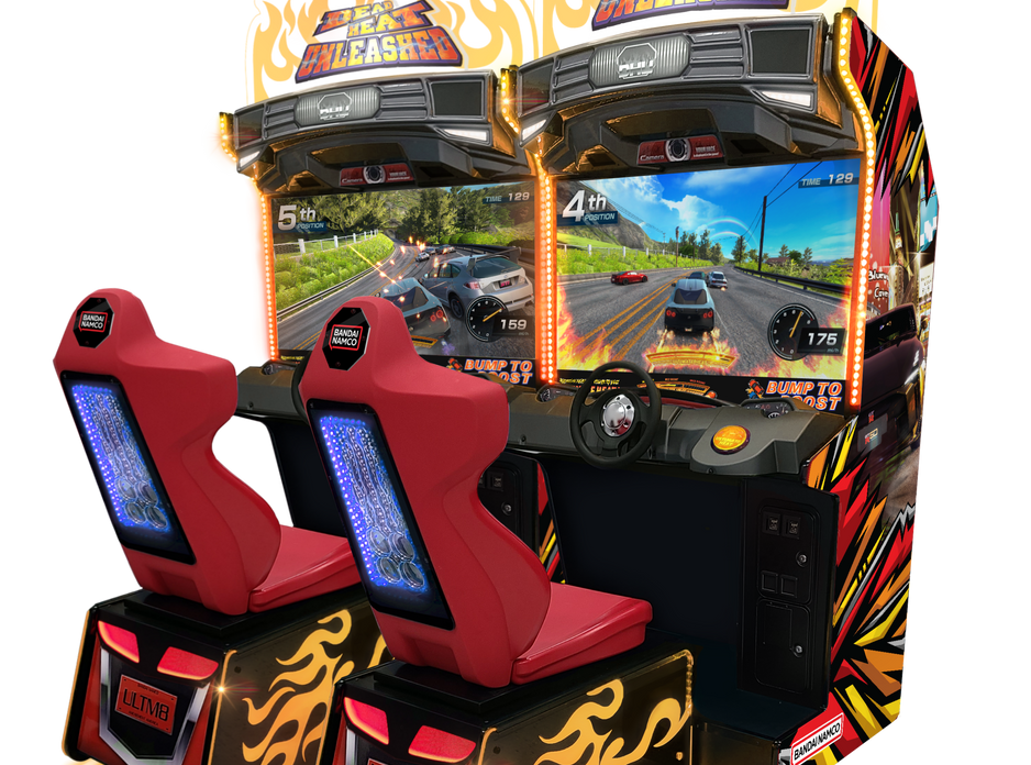 The sequel to the 2010 arcade hit, “Dead Heat Unleashed” is an intense new racing game with four new courses, new cars, and an attractive LED lit cabinet that responds to the game, changing lighting patterns during gameplay. Link up to four cabinets to challenge players head-to-head in tight races that are sure to be a dead heat every time! Players charge their ULTIMATE HEAT gauge through aggressive racing and crowding their rivals.